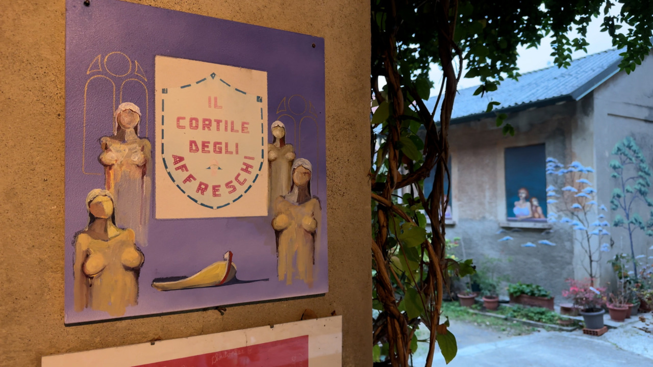 Visitiamo poi il “Cortile degli artisti”, dove la conduttrice incontra il pittore Carlo Brenna tra le sue coloratissime opere.