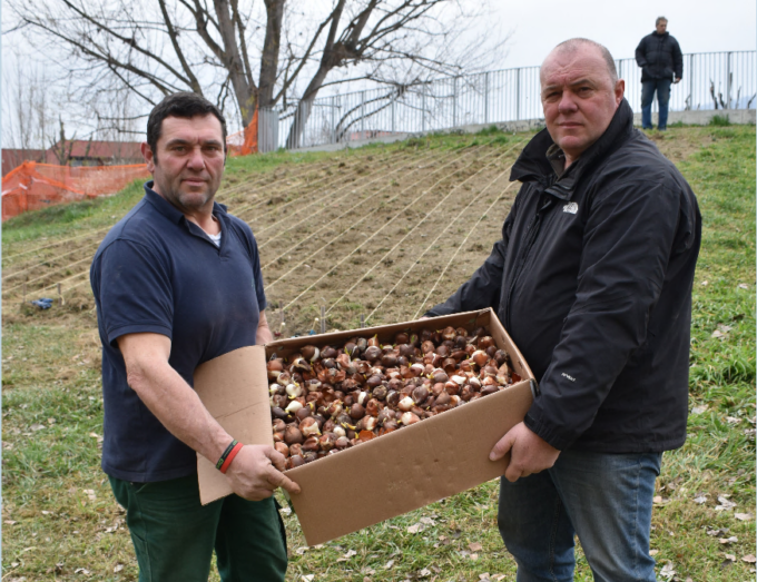 Gli studenti, muniti di paletta e rastrello hanno così, a turno, piantumato i bulbi che coloreranno il parco dell’Oltrepo.