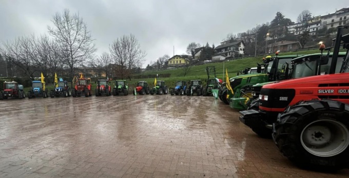 Unica modifica al programma originario, quella della location che ha ospitato la messa, che non si è svolta all’aperto, come era previsto, ma all’interno della palestra delle scuole, celebrata da Don Domenico. Ritrovo alle 10 dalla piazza mercatale di Gassino. Qui si sono ritrovati gli agricoltori con i trattori. E da qui poco dopo è partito il lungo corteo di mezzi agricoli (poco più di 20) che ha raggiunto piazza Italia a Sciolze, dove c’è stato lo schieramento.