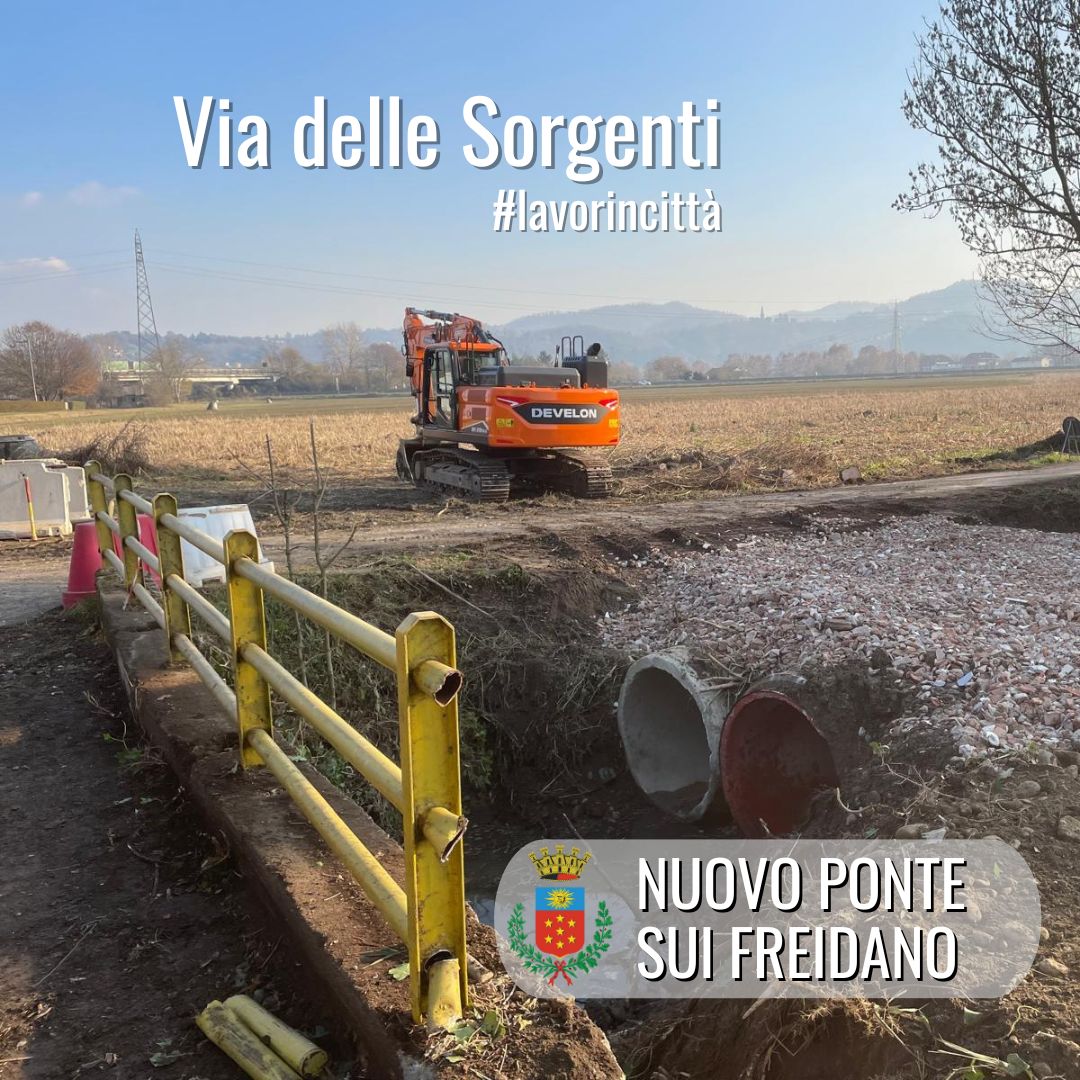 Sono in corso i lavori di rifacimento del ponticello sul Freidano in via delle Sorgenti. I lavori prevedono anche la sistemazione delle sponde del rio.