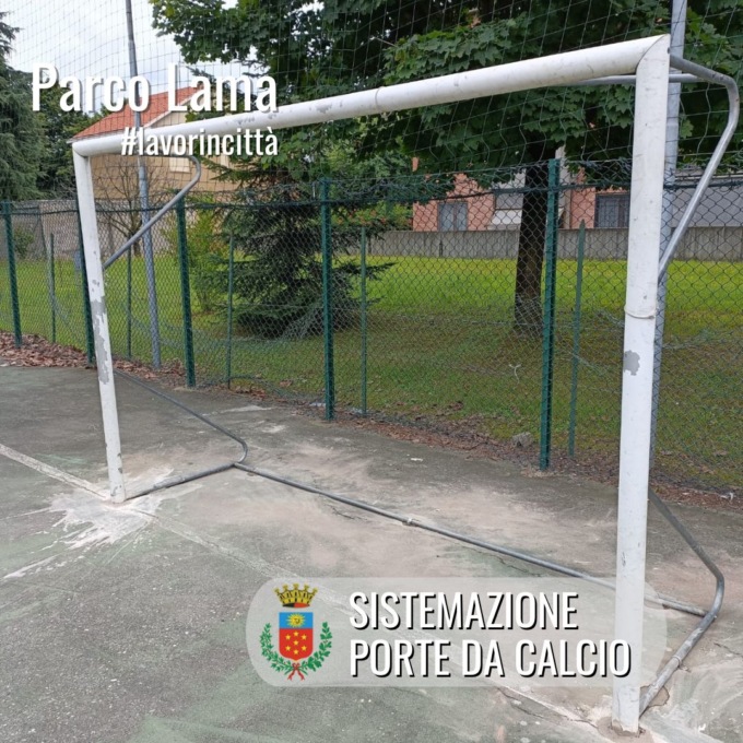 Al parco Lama sono stati sistemati gli autobloccanti, la recinzione dei campi sportivi e sono state rifissate a terra le porte da calcio.