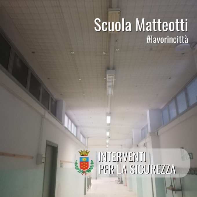 Si pensa anche alle scuole: sono in corso infatti i lavori di potenziamento della sicurezza della scuola media Matteotti, con l’installazione delle reti antisfondellamento dei soffitti.