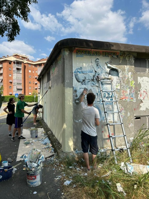 Il murales è stato realizzato lungo la cabina elettrica di corso Puccini a Venaria – nelle immediate vicinanze del Teatro della Concordia – dove prima è stata effettuata, dagli stessi ragazzi, una pulizia approfondita dei muri, anche grazie al prezioso aiuto dell’Informagiovani di Venaria.