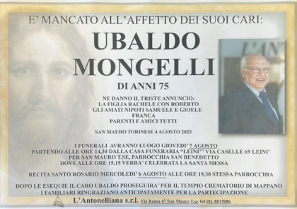 Questa sera, mercoledì 6 agosto 2025, nella chiesa di San benedetto a San Mauro, alle 19.30, ci sarà la recita del rosario in sua memoria, mentre domani, giovedì 7, alle 15.15 sarà celebrato il funerale nella stessa parrocchia, con partenza alle 14.30 dalla Casa Funeraria Leinì di via Caselle 69.