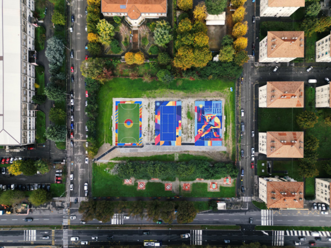l’intervento di riqualificazione urbana e valorizzazione dei tre Campi sportivi di Pietra Alta-Falchera, di fronte al Liceo Scientifico e Linguistico Giordano Bruno, nel cuore di Torino Nord. Il progetto è stato promosso e sostenuto dalla Consulta per la Valorizzazione dei Beni Artistici e Culturali di Torino con il socio Lavazza.
