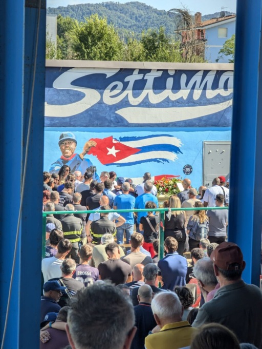 A fare da sfondo alla sentita cerimonia il murale realizzato recentemente dall’artista E. Mono Carrasco che ritrae il volto dell’allenatore e le bandiere cubane ed italiane. Un modo per ricordare una delle colonne della società del Bc Settimo e il suo profondo legame anche con l’Italia.