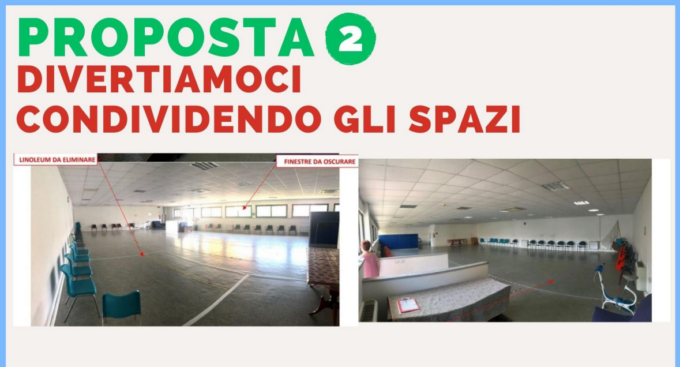 La proposta 2 è “Divertiamoci condividendo gli spazi” e riguarda la sede Unitre di via Buonarroti. L’obiettivo è riqualificare il salone così da renderlo uno spazio funzionale e polivalente a disposizione di cittadini e associazioni.