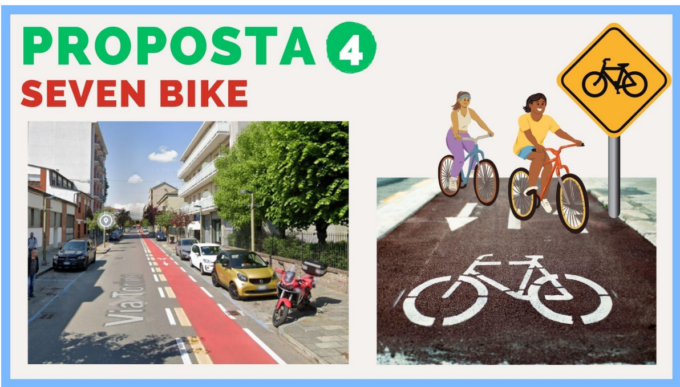 Il quarto progetto è intitolato “Seven bike”e punta a incentivare la mobilità sostenibile, in particolare quella ciclabile. Prevede interventi in corso Piemonte e via Torino, in zona mercato e in zona stazione e in piazza Vittorio Veneto.