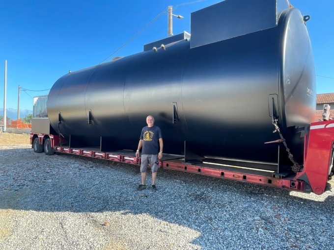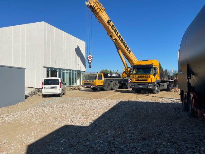 Nella serata di ieri, lunedì 21 luglio 2025, è giunto a Gassino, presso il cantiere della nuova scuola, in via Regione Fiore, il “mezzo eccezionale” che ha trasportato l’enorme cisterna che servirà da serbatoio di raccolta acque per alimentazione impianto antincendio.
