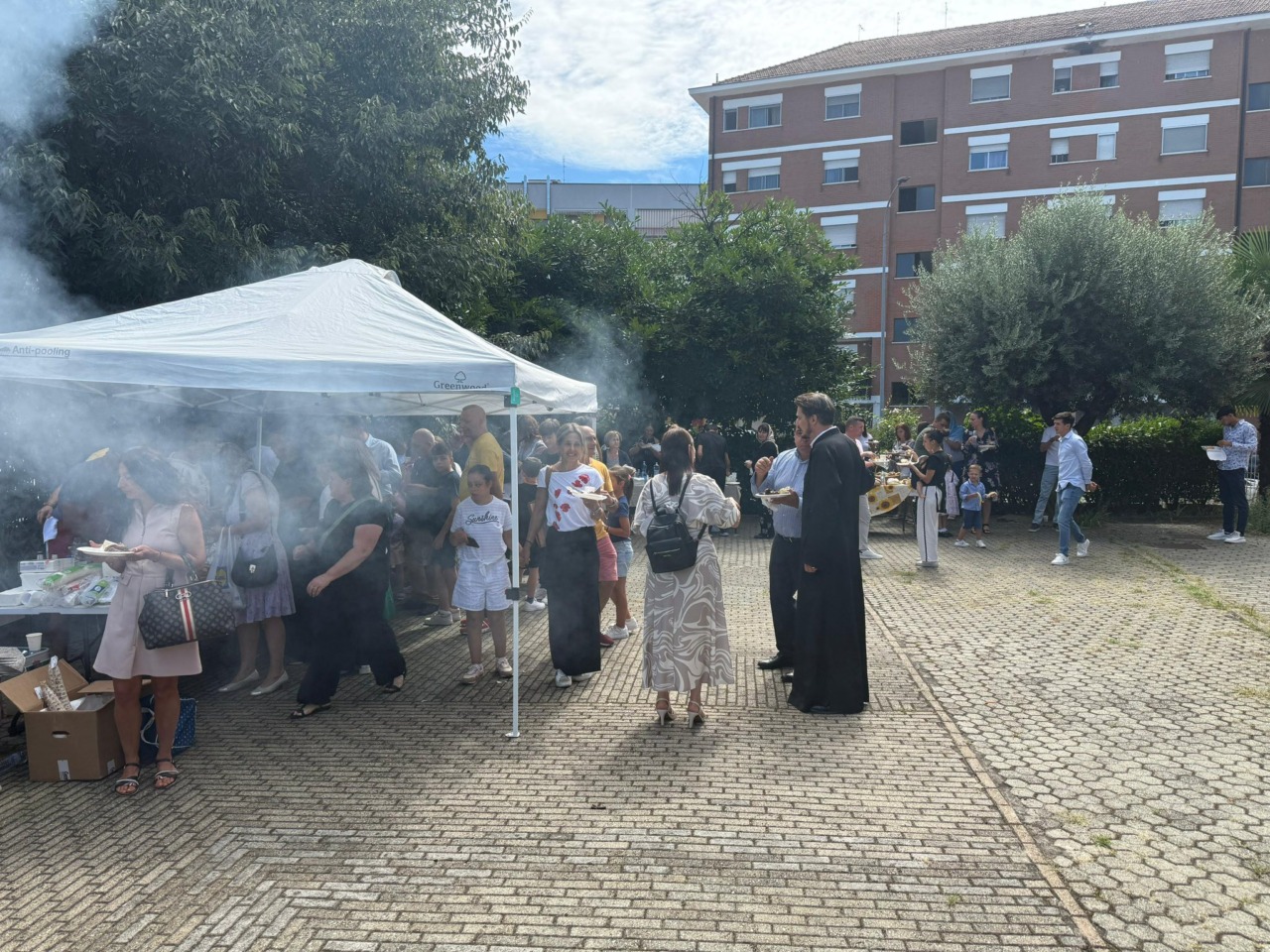 In attesa del trasferimento nella nuova chiesa in costruzione in via Braille, le celebrazioni si sono svolte nel cortile della sede di via Luigi Einaudi, che da anni ospita la comunità. La giornata è stata scandita dalla Divina Liturgia solenne, alla quale hanno preso parte numerosi fedeli con le loro famiglie.
