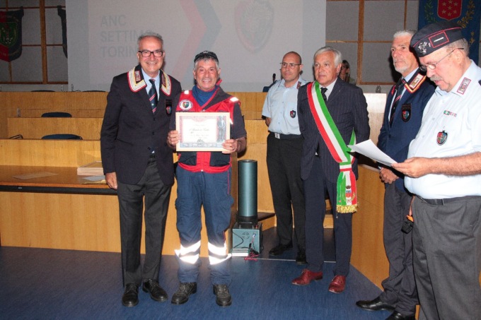 Presenti alla cerimonia il generale di Brigata Ispettore Regionale Anc Marcello Bergamini, il Colonello Guido Di Vita presidente del nucleo provinciale Anc per la Protezione Civile di Torino, il Tenente Daniele Massa coordinatore Provinciale per le sezioni di Torino.