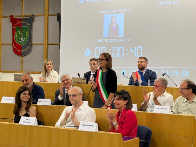 Durante la seduta la sindaca Elena Piastra, nel ricevere la fascia tricolore, ha giurato di servire la Costituzione. «Le sfide per Settimo sono soprattutto due, quella demografica e quella ambientale – ha detto la sindaca – Non si risolvono in un giorno, in un anno o in un mandato. Ma noi abbiamo il compito di segnare una strada. Chi è arrivato prima di noi ha reso viva la città, e i servizi che oggi diamo per scontati hanno reso Settimo diversa: penso ad esempio alla pedonale o alla Biblioteca Archimede. Noi abbiamo il compito di raccogliere questa eredità per continuare a trasformare una città, la nostra, profondamente capace di cambiare».