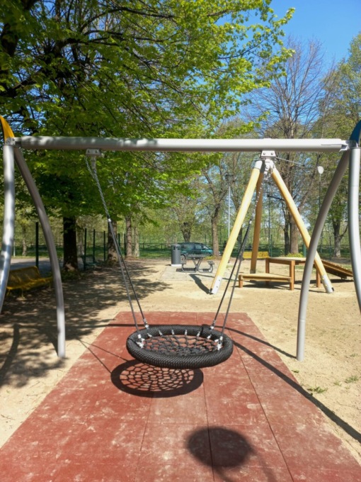 La nuova area è dotata di una moderna struttura a castello con scivoli di diverse altezze e pareti per arrampicarsi, una carrucola per piccole avventure, un’altalena inclusiva a cestone e una nuova pavimentazione antiurto che garantisce maggiore sicurezza durante il gioco. È stata inoltre recuperata e resa nuovamente utilizzabile l’altalena già presente nel parco.