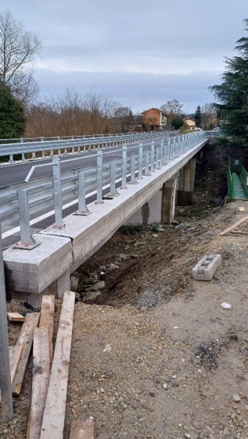 L’intervento ha previsto anche la sostituzione delle vecchie barriere stradali e dei parapetti, con la modifica del cordolo in calcestruzzo armato a bordo ponte e un conseguente, seppur limitato, ampliamento della carreggiata stradale.