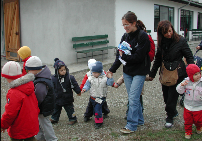 «Il nido è composto di due sezioni, una eterogenea di bambini da pochi mesi a circa due anni, l’altra di bambini «grandi», cioè coloro che andranno alla scuola dell’infanzia l’anno successivo. I piccoli sono i gufetti, i grandi gli orsetti, perché come alla scuola dell’infanzia, tendiamo a non evidenziare il loro essere grandi o meno, perché per noi è ovvio che il grande del nido non è il grande della scuola dell’infanzia o grande in assoluto, ma per i bambini non è così ed è inutile e frustrante impregnare l’idea di crescere per avere diritti/doveri. Crescere è naturale, cambiare è naturale, cambiare spaventa (anche gli adulti) ma è normale, e cambiare è un argomento che viene trattato spesso attraverso molte narrazioni, molti giochi, molte cose pratiche, tangibili, il tempo che passa, le stagioni che passano, gli abiti diventano stretti, i giochi diventano noiosi, è ora di cambiare! Cambiare sezione, cambiare attività, cambiare scuola. Questo è il nostro modo di vivere la continuità con la scuola dell’infanzia e con la scuola primaria, affrontare il cambiamento con una ‘cassetta degli attrezzi’ per non esserne preoccupati».