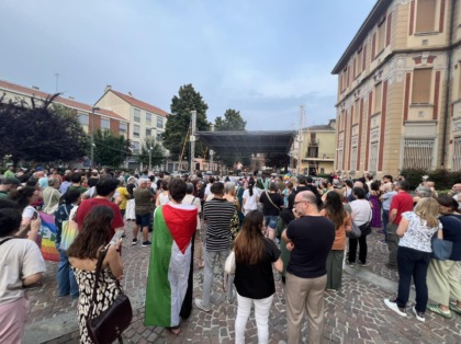 In centinaia si sono ritrovati venerdì 13 giugno in piazza della Libertà a Settimo Torinese, rispondendo all’appello del Coordinamento Comuni per la Pace (CoCoPa) e della Casa dei Popoli di Settimo Torinese per una manifestazione pubblica a sostegno del cessate il fuoco in Medio Oriente.