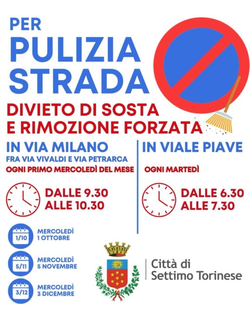 Il Comune di Settimo Torinese, in collaborazione con Seta, introduce nuove modalità di spazzamento per migliorare la pulizia della città. Dopo l’avvio del servizio in viale Piave, da mercoledì 1° ottobre sarà attivo anche in via Milano.