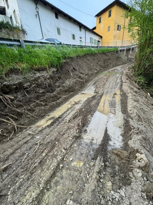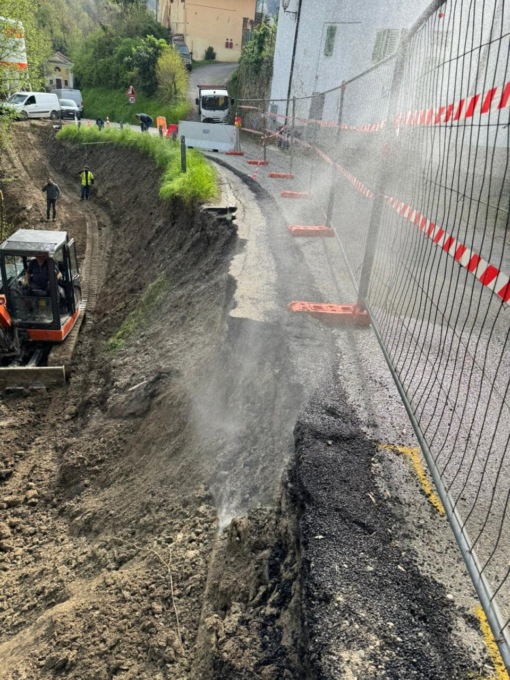 All’inizio di marzo, durante una fase di intenso maltempo, una frana aveva asportato parte della scarpata di valle della strada.