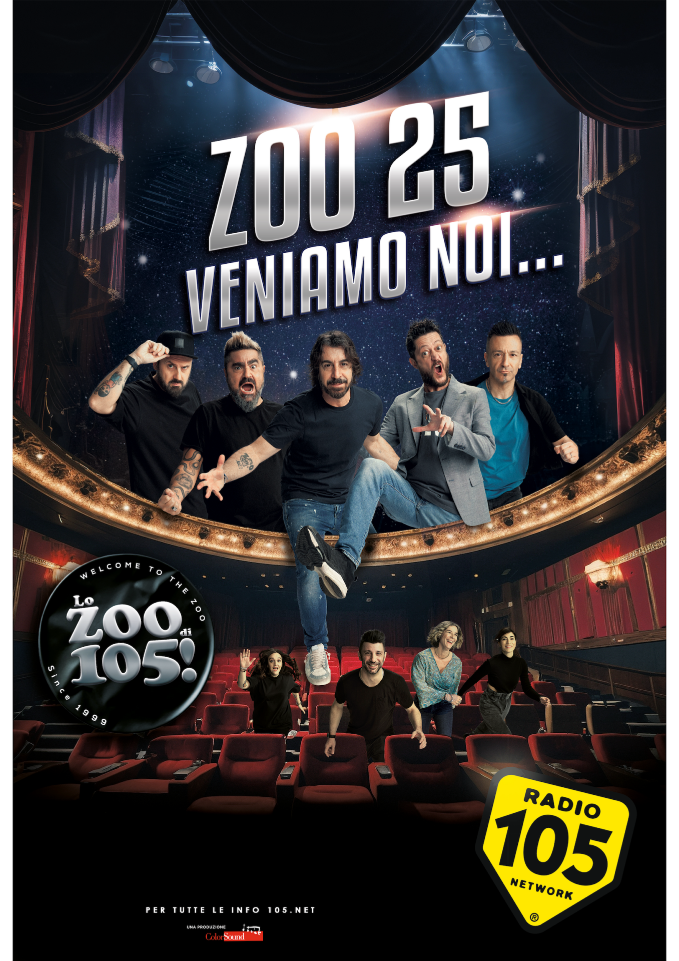 Lo Zoo di 105 approda a teatro! Dopo 25 anni di provocazioni, risate e milioni di ascoltatori, Lo Zoo di 105 è pronto a fare il grande salto e arriva al Colosseo! Marco Mazzoli, Paolo Noise, Fabio Alisei, Wender, Pippo Palmieri e tutta la crew portano per la prima volta sul palco di un teatro l’irriverenza e il caos che li ha resi famosi.