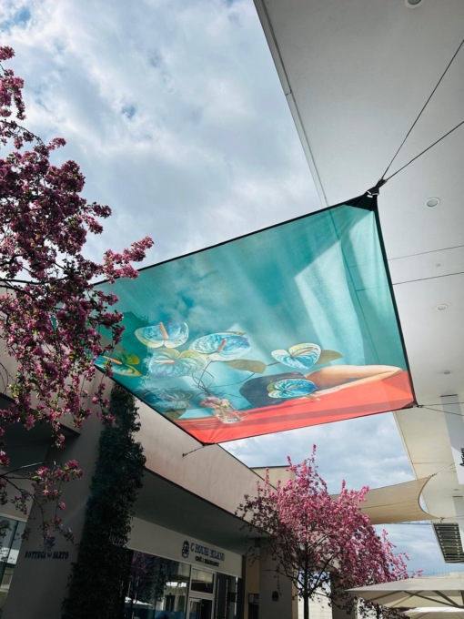 Le 16 opere stampate in grande formato ed esposte a più di sei metri di altezza danno quindi vita ad una mostra collettiva a cielo aperto che accompagnerà i visitatori a fruire delle opere in un percorso inedito. Ogni opera sarà in simbiosi con la primavera, poiché la luce del sole filtrerà attraverso le opere stesse creando un percorso suggestivo e di grande impatto visivo. In mostra opere di: Tatiana Cardellicchio, Valeria Ciardulli, Anna-Laure Etienne e Carla Sutera Sardo. Ad accompagnare la narrazione dell’esposizione, i contenuti realizzati da Catherine Gipton, AI Art&Fashion Advisor creata dall’artista & creative researcher Alessandro Scali, che proporrà interpretazioni artistiche capaci di connettere arte e moda per un’esperienza interattiva e coinvolgente.