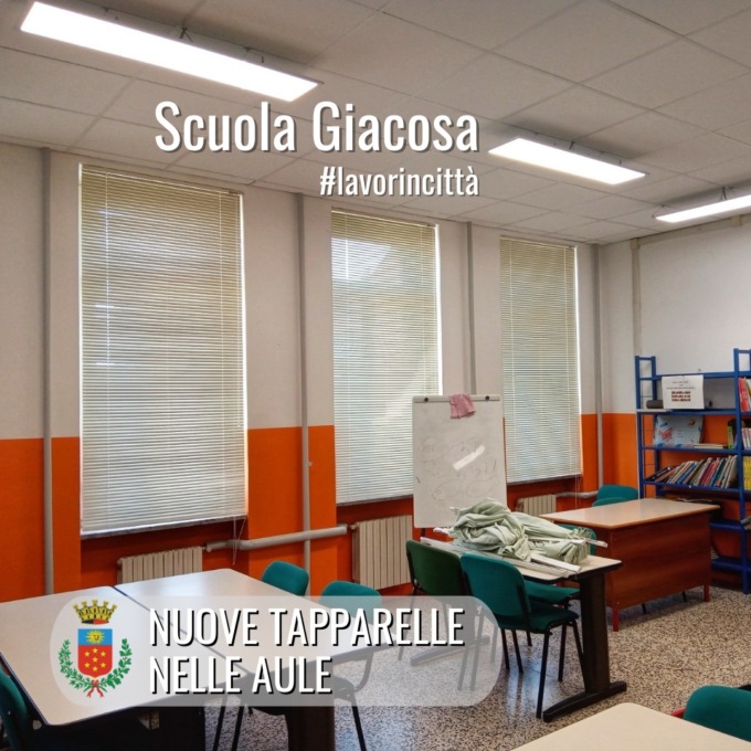 È in corso la sostituzione delle tende dei locali di varie scuole della Città: Rodari, Munari, Giacosa e, nelle prossime settimane, Gobetti.