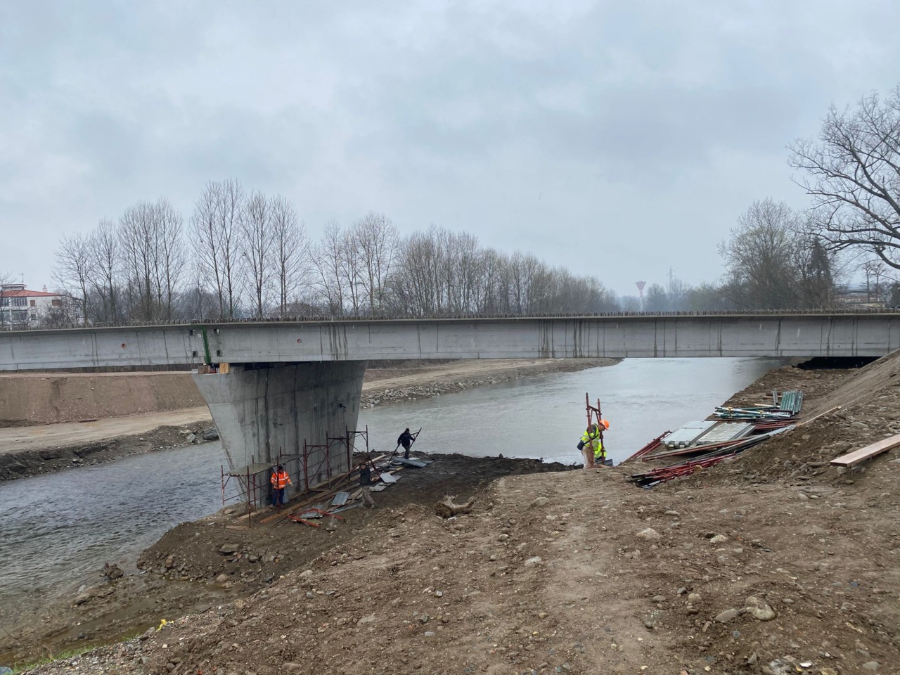 Le operazioni in corso riguardano la formazione dei traversi in cemento armato in corrispondenza delle spalle e delle pile. A seguire è prevista la posa delle predalles (lastre piane in calcestruzzo tralicciate prefabbricate), che è propedeutica all’armatura e al successivo getto della soletta d’impalcato.