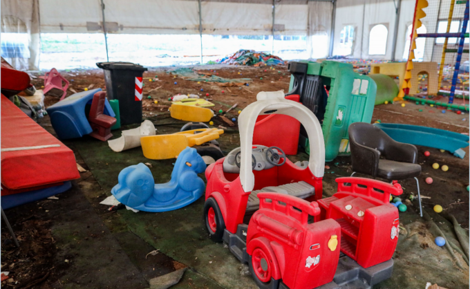All’interno ormai ci sono quei pochi materiali e giochi che chi ha deciso di rilevare le attrazioni deve ancora trasportare via. Qualche «macchinina» che tanto avrà fatto divertire centinaia di bambini. Per non parlare delle due «piscine» piene di palline colorate che dovranno ancora essere prelevate da chi le ha acquistate nel corso degli ultimi mesi.
