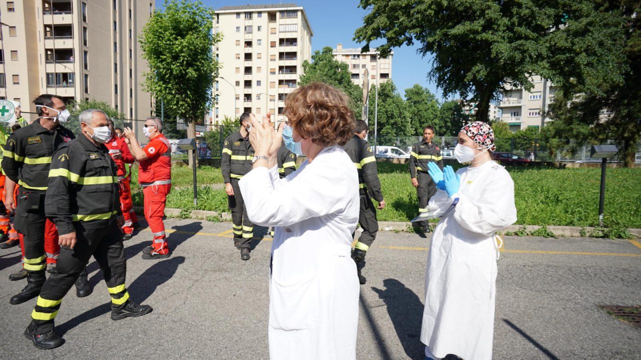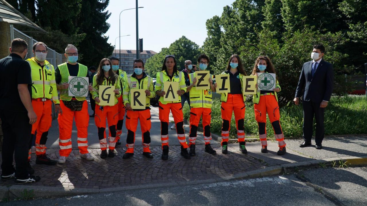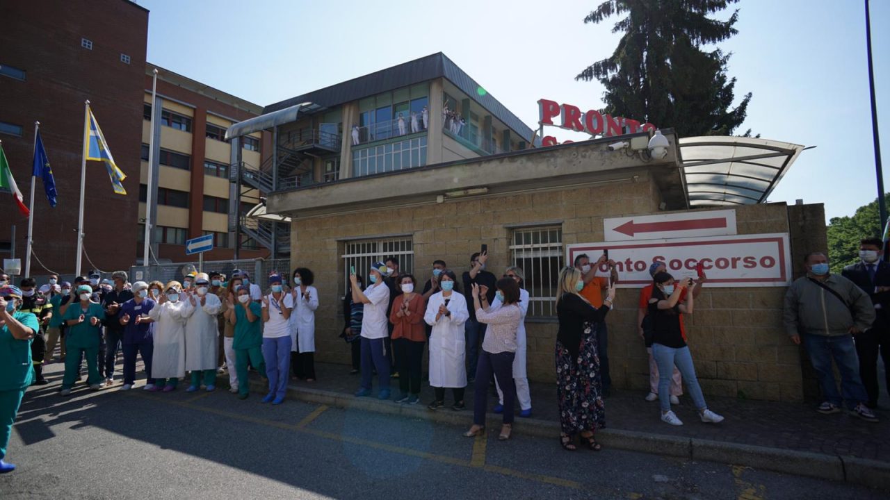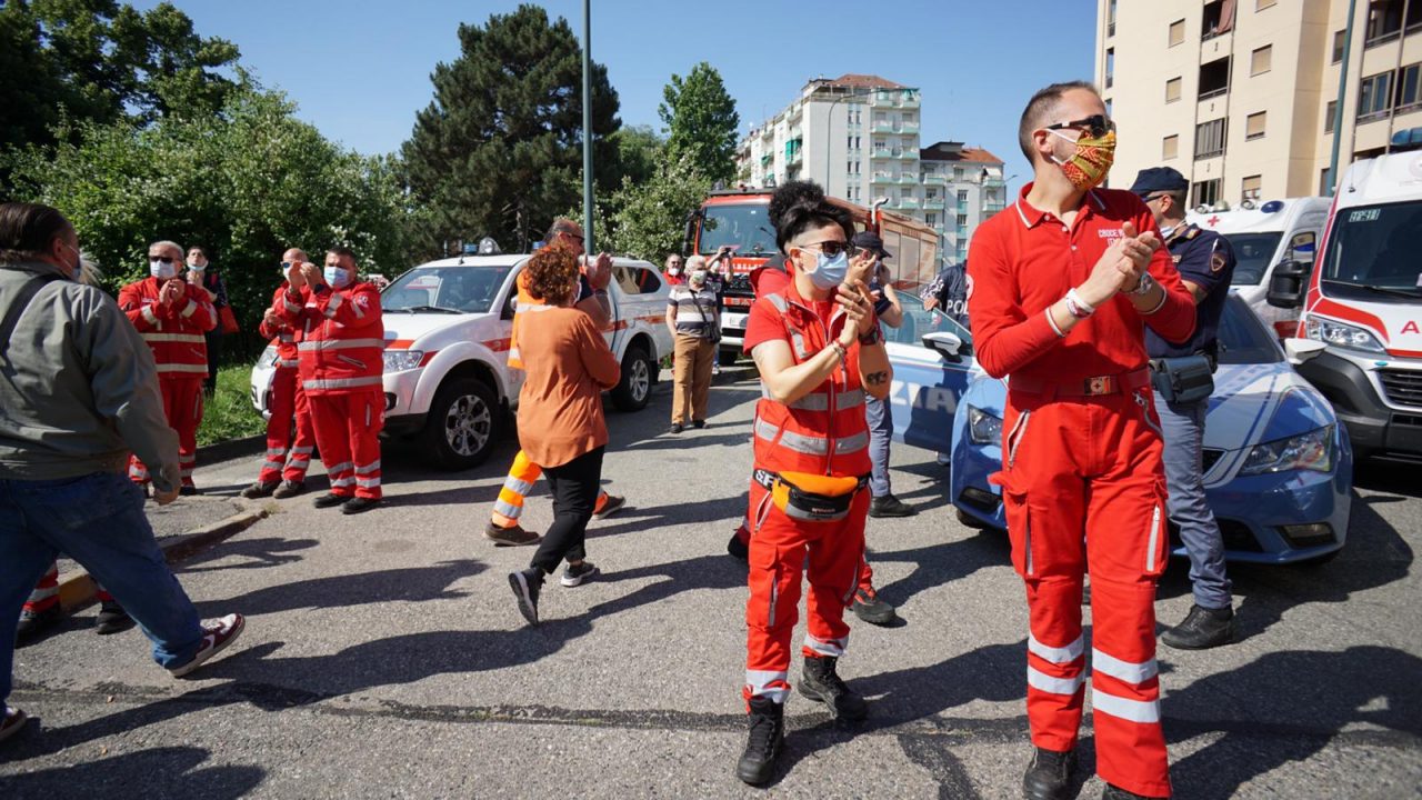 Per ringraziare il personale sanitario che è stato attivo in questi mesi i soccorritori hanno fatto un minuto di sirene spiegate e poi hanno fatto un ulteriore giro dell’isolato con le sirene per salutare i pazienti ed il personale che non è potuto scendere al flash mob.