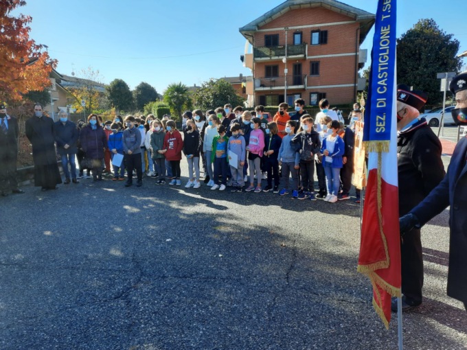 Alle 9 primo appuntamento a Castiglione, in piazza IV Novembre, con l’Amministrazione comunale, i rappresentanti delle associazioni, gli alpini, i bambini del Consiglio dei ragazzi e gli alunni delle quinte elementari. Era presente anche la banda musicale di San Raffaele.  Si è poi formato il corteo che ha raggiunto il monumento dei Carabinieri  dove è stata deposta una corona e quindi il monumento ai Caduti dove è stata deposta una seconda corona. Al termine, le autorità sono state al parco della rimembranza, al cimitero di Castiglione Alto per la deposizione di un’altra Corona.