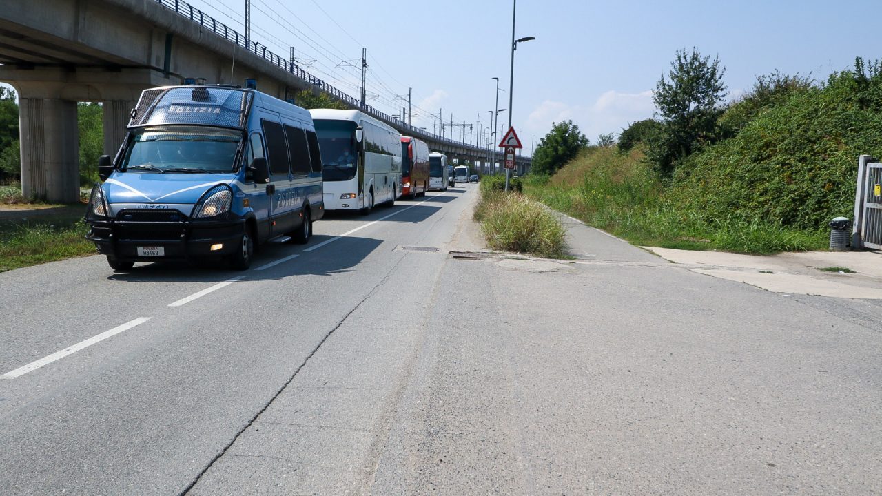 Quattro pullman sono arrivati pochi minuti fa presso il centro polifunzionale di via De Francisco, a Settimo.