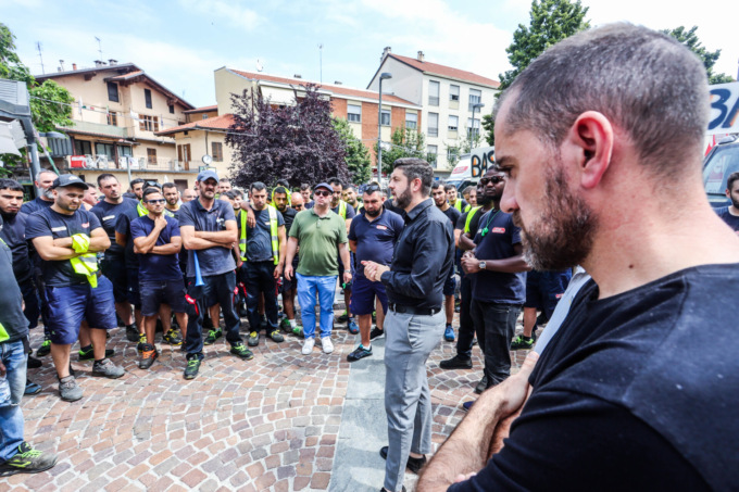 Due fronti totalmente contrapposti tra loro. Anche se sotto la stessa bandiera, o sotto lo stesso datore di lavoro. Quella che si è registrata oggi, giovedì 13 luglio, è stata una mattinata di tensione anche se per fortuna si sono evitati incidenti.
