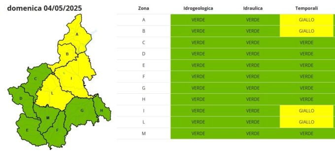 L’ARPA Piemonte ha infatti diramato un’allerta gialla per rischio idrogeologico valida per la giornata di oggi, domenica 4 maggio, che interessa anche la zona del comune collinare.