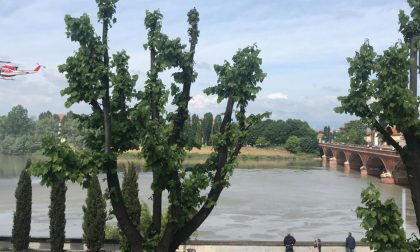 Tante le persone che, incuriosite dall’elicottero a bassa quota, si sono affacciate sul Po per assistere all’intervento.
