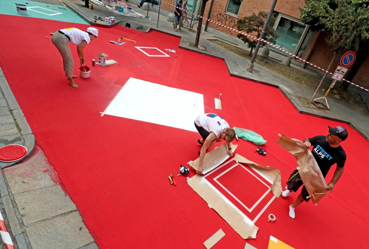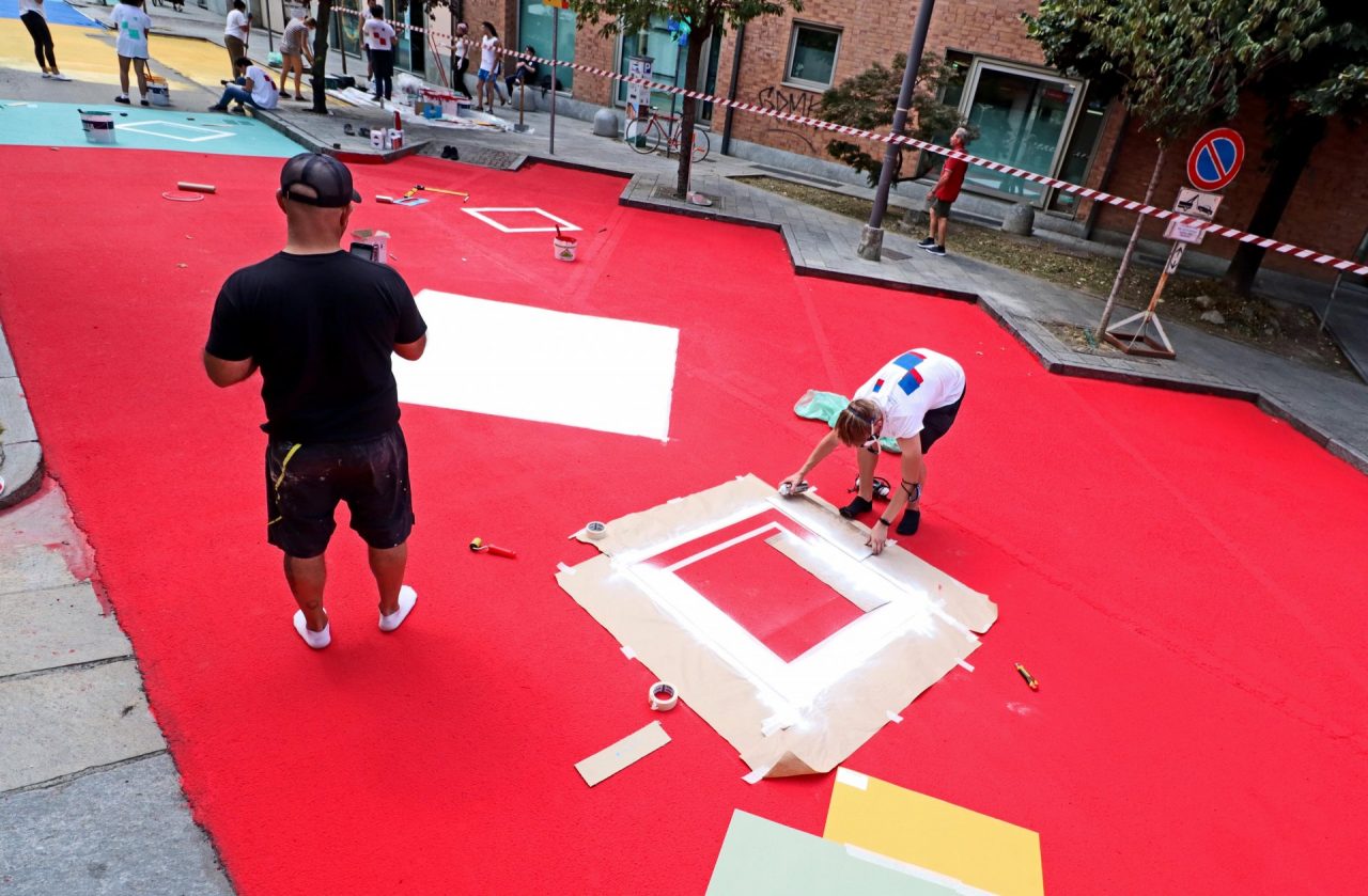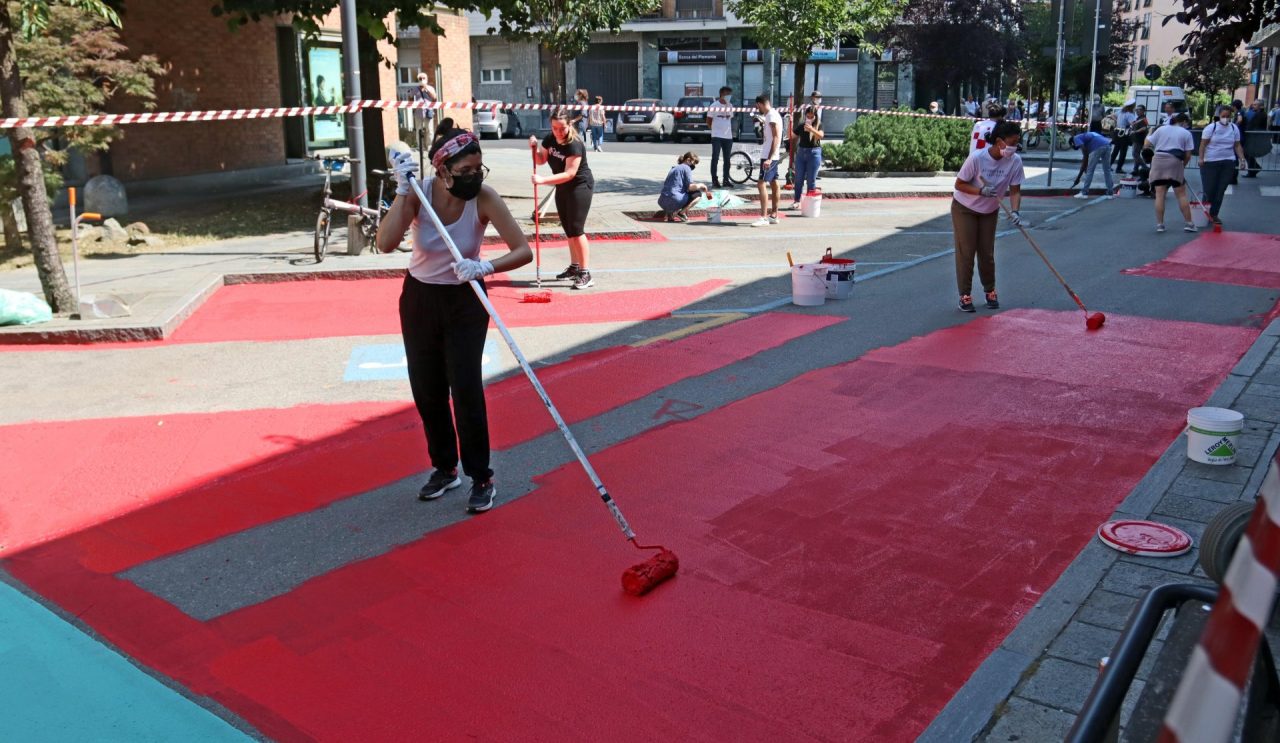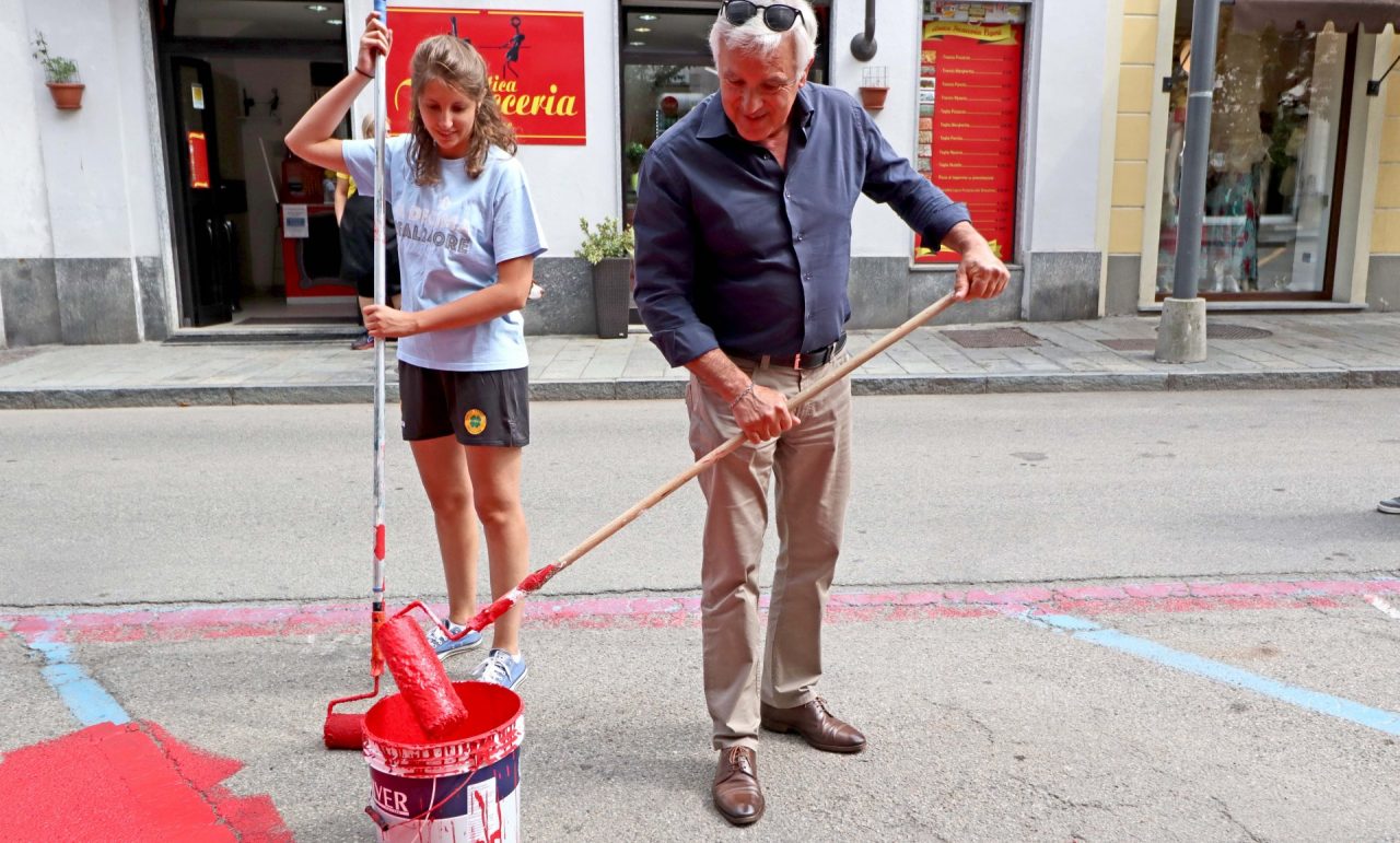 Già dalla mattinata di oggi, martedì 14 luglio, molti volontari – coordinati dai curatori del progetto – sono al lavoro per la verniciatura del primo lotto, quello in direzione via Milano. Colori quali il rosso, il giallo, l’azzurro e il blu ospiteranno giochi e “claim” che puntano a sottolineare l’entrata in vigore della novità nella fruizione della viabilità cittadina.