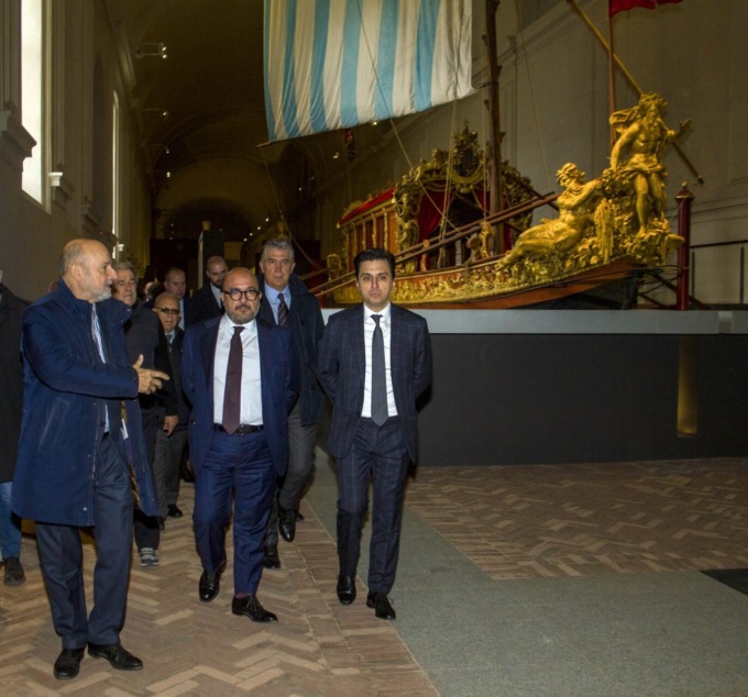 Ad accoglierlo anche il sindaco di Venaria Reale Fabio Giulivi che ha così raccontato la giornata: “Due eccellenze italiane dove ricerca, tecnologia, arte e cultura si fondono ed esplodono nella sconfinata bellezza di luoghi così immersi nella storia. Oggi il ministro della Cultura Gennaro Sangiuliano è stato in visita alla Reggia di Venaria, dopo aver visto il Centro Conservazione e Restauro “La Venaria Reale”. Accompagnato dal Presidente e dal Direttore del Consorzio delle Residenze Reali Sabaude, Michele Briamonte e Guido Curto, il Ministro ha avuto l’occasione di ammirare il Bucintoro dei Savoia nella Regia Scuderia e la Galleria Grande”