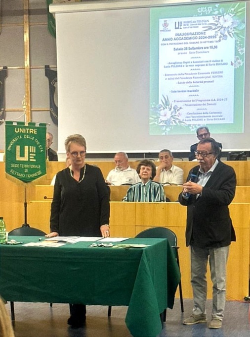 Il pomeriggio di sabato 28 settembre 2024, in occasione della cerimonia di inaugurazione dei corsi, la sala consiliare di Settimo Torinese era letteralmente gremita di pubblico. Presente per l’occasione anche il presidente nazionale Piercarlo Rovera e rappresentanti dell’amministrazione comunale.