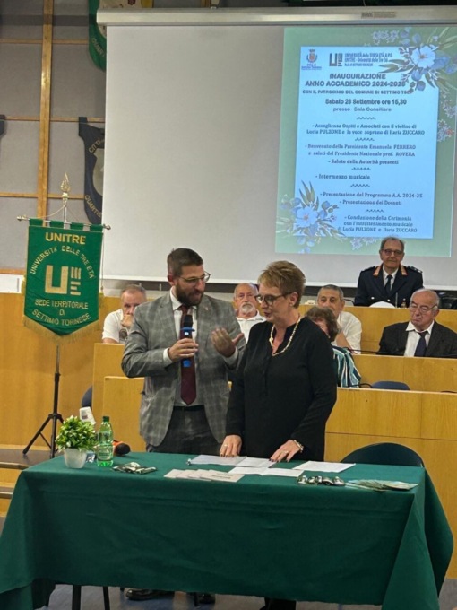 “Io vorrei ringraziarvi, a nome mio e del Direttivo, per la vostra grande partecipazione alla Cerimonia di ieri. È stata una grande emozione ritrovarvi tra il pubblico. Come potrete ben immaginare, dietro alla gestione di questa ‘grande famiglia’ c’è tanto lavoro e tanto tempo sottratto al nostro privato, però noi lo facciamo con l’entusiasmo e con la consapevolezza che stiamo facendo qualcosa di utile per la comunità. Ringrazio dunque le autorità presenti, quelle che ci hanno inviato gli auguri perché non avrebbero potuto partecipare, il Presidente Unitre Nazionale Rovera, le Associazioni del territorio, le Consulte, le testate locali, i docenti, gli Associati e coloro che si assoceranno…insomma tutti, ma proprio tutti perché il vostro credere in ciò che facciamo, è per noi, la più grande gratificazione e gioia. Un caro abbraccio virtuale ma di cuore”.