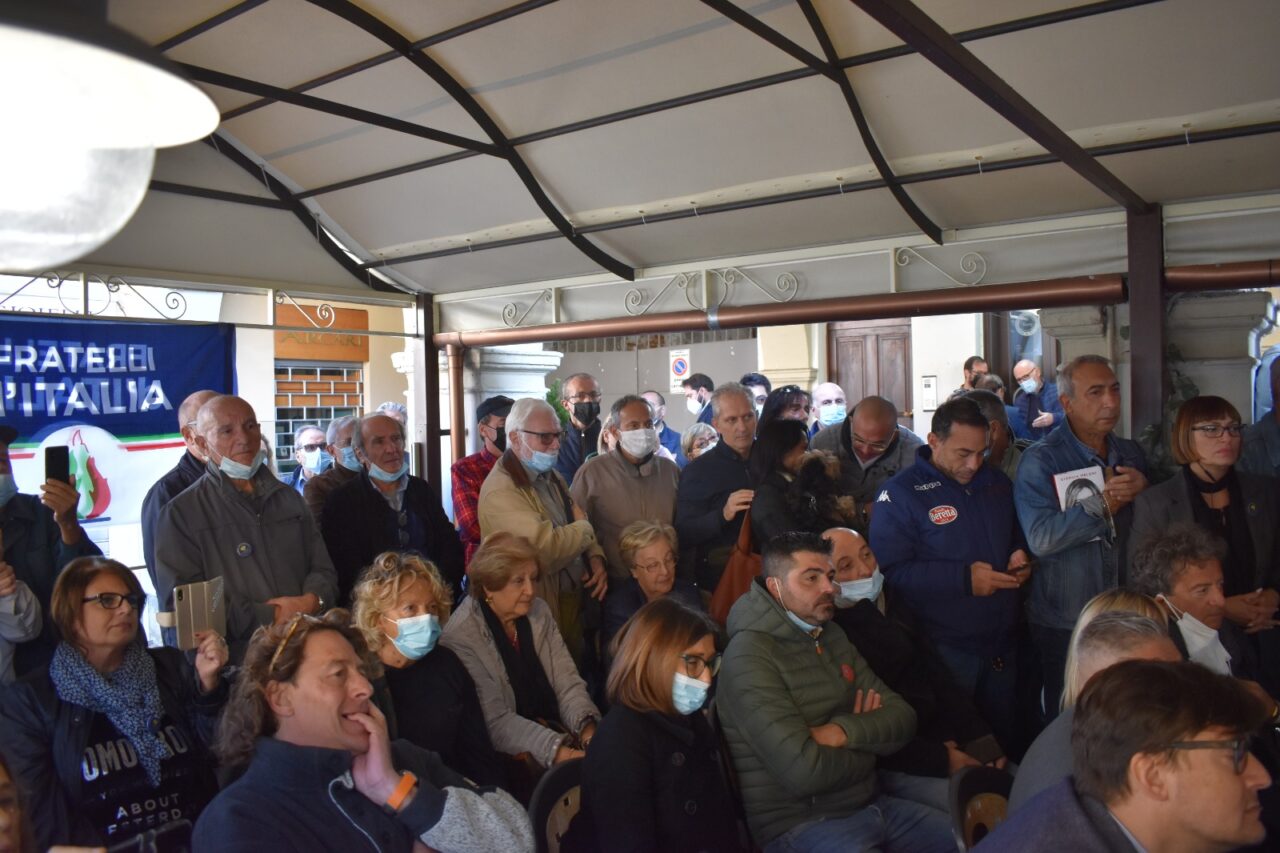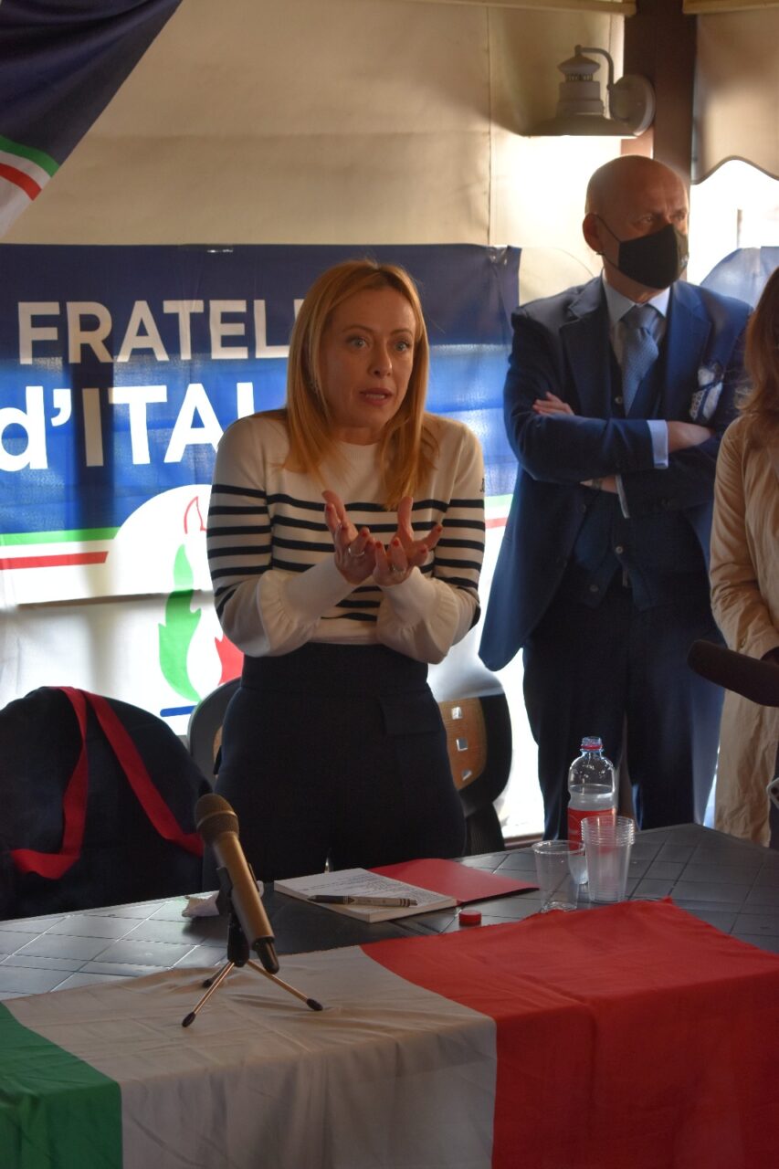 La presidente di Fdi ha incontrato i cittadini nel dehor della Caffetteria dei Portici, dove c’è stata un intervento durante il quale la Meloni ha invitato i cittadini di San Mauro supportare la candidatura a sindaco di Paola Antonetto.