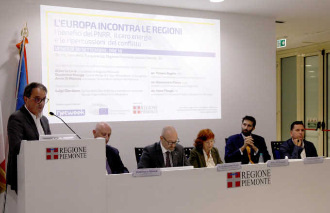 Il PNRR, il caro energia e le ripercussioni del conflitto. Sono questi i temi dell’incontro “L’Europa incontra le Regioni” andato in scena venerdì 30 settembre 2022 alle 18, in piazza Castello 165 a Torino, nella Sala della Trasparenza, gentilmente messa a disposizione dalla Regione Piemonte.
