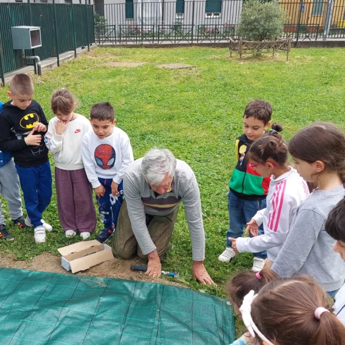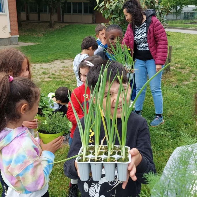 Alla scuola primaria Vivaldi di Settimo Torinese, i bambini della 1ª C si sono trasformati in piccoli agricoltori grazie alla creazione di un orto botanico, realizzato in collaborazione con Michele Pizzino dell’associazione Casa dei Popoli.