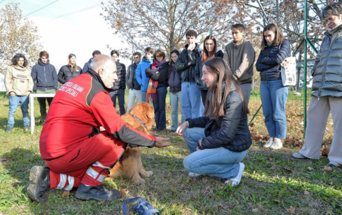 Dopo aver visitato i locali della struttura, non sono mancate le riflessioni sul coinvolgimento emotivo dei volontari e la visita direttamente sul «campo» della Cri. E poi, nel corso dei «lavori», spazio anche all’incontro con Dafne, Cesare e Giulio, i cani dell’unità cinofila in seno alla sede di Settimo che hanno dato una dimostrazione delle tecniche di addestramento e di salvataggio, oltre che del legame profondo con il loro padrone.