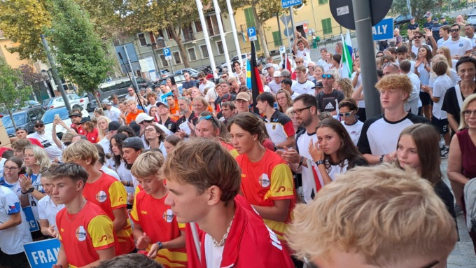 La cerimonia si è aperta con il ritrovo in piazza Vittorio delle varie nazioni che prenderanno parte alla competizione. Ogni gruppo ha partecipato alla breve sfilata nel centro cittadino, conclusa in piazza della Libertà. Davanti al Municipio, le varie Nazioni sono state accolte sul palco dove hanno ricevuto la targa celebrativa e l’applauso di una Città che ha «abbracciato» con passione e curiosità un evento di caratura internazionale.