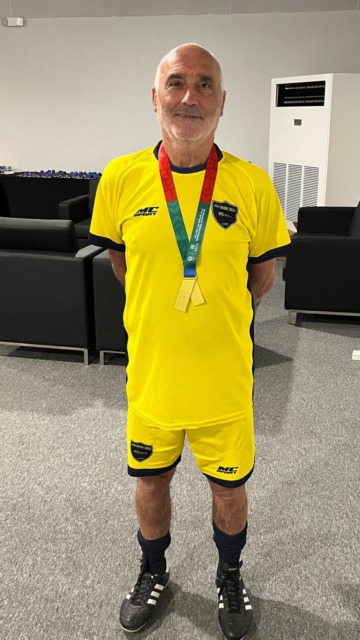 Appassionato di calcio, ha fatto parte della rappresentativa azzurra Over 60. La finalissima si è giocata il 14 febbraio, giorno di San Valentino: di fronte l’Australia. «Abbiamo vinto 2-1 e siamo riusciti a salire sul gradino più alto del podio».