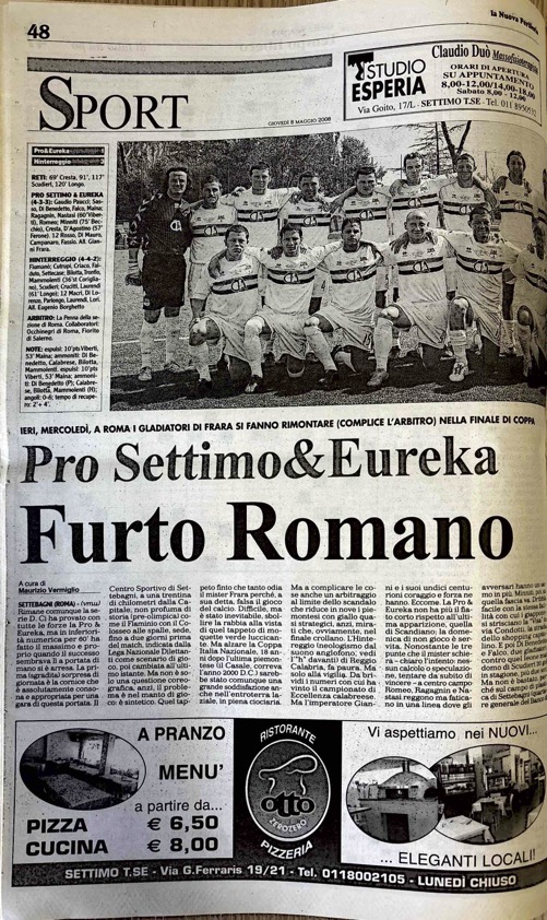 Il “geometra” Ragagnin, il “gladiatore” Di Benedetto e le parate di Gaudio Pucci – gli eroi di quella Pro Eureka Settimo – meritavano un finale diverso da quello scritto dal fischietto di La Penna.