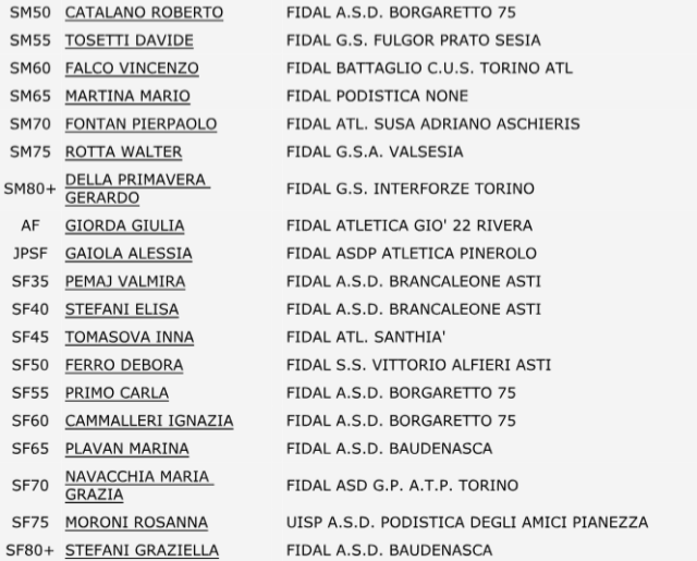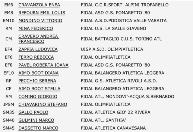 Sul fronte sportivo ricordiamo che la prova era valida come campionato regionale individuale per le categorie over 35, con l’assegnazione delle maglie di campione piemontese nelle diverse fasce d’età maschili e femminili. In palio anche il titolo regionale di società, elemento che ha reso la competizione ancora più sentita tra i club presenti. Tra gli atleti gialloneri sono stati premiati Alberto Monasterolo, Stefano Chivarino, Youness Bouruk, Bruno Piazza, Moreno Maugeri, Stefano Rolland, Andrea Vittoni, Diego Narote.