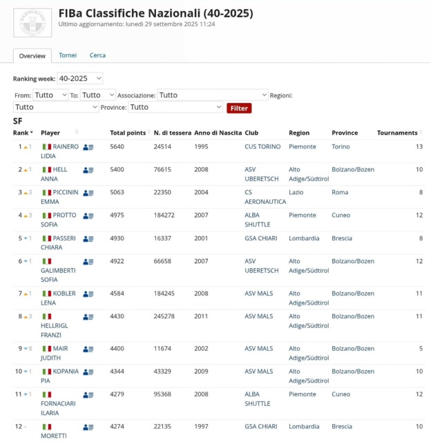 Gassino Torinese celebra un risultato straordinario: Lidia Rainero, cittadina del territorio, è la nuova numero uno del badminton femminile italiano.