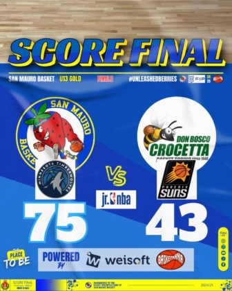 Complimenti al San Mauro Basket: ieri la squadra dei San Mauro Minnesota Timberwolves ha conquistato il primo posto nel campionato regionale U13 Gold. Seguirà, ora, una fase di qualificazione per accedere alle fasi nazionali. In bocca al lupo ai giocatori e allo staff della società sanmaurese.