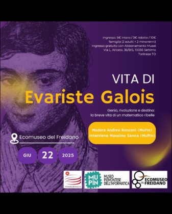 Domenica 22 giugno alle ore 15.00 a cura di Museo Piemontese dell’Informatica – MuPIn si svolgerà l’incontro “Vita di Evariste Galois”. La straordinaria storia di un genio ribelle della matematica, tra politica, carcere e intuizioni che hanno rivoluzionato l’algebra moderna. Durante gli eventi sarà possibile visitare la mostra “In continua scrittura”. L’incontro è inserito nel programma di Settimane della Scienza.