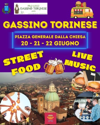 Torna a Gassino Torinese il “Street Food & Musica dal vivo”, da venerdì 20 a domenica 22 giugno in piazza Gen. C.A. Dalla Chiesa. Giunto alla quinta edizione, l’evento unisce buon cibo da tutta Italia e dalla Baviera, musica per tutti i gusti e intrattenimento per grandi e piccoli. Tra le proposte culinarie: panzerotti, arrosticini, gnocco fritto, maialino sardo e la Paulaner Beer Fest, con birre e cocktail a tema. Ogni sera musica dal vivo, giochi per bambini, uno spazio dedicato alle piante esotiche e, domenica, anche un concerto bandistico congiunto di Gassino e San Raffaele. L’iniziativa è organizzata dalla Pro Loco di Gassino e da Sapori dal Mondo.
