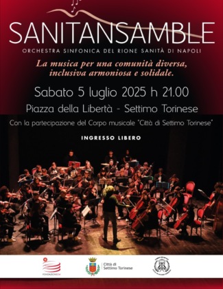 Si tratta di un progetto di alto valore culturale, che coinvolge ragazzi e ragazze provenienti dal quartiere Sanità di Napoli. Sanitansabile, attraverso la musica, dal 2008 si propone di fornire un’alternativa positiva a chi cresce in un contesto complesso dal punto di vista sociale. Saranno una quarantina i giovani musicisti che verranno a Settimo e, oltre a esibirsi in un concerto – a cui parteciperà anche il Corpo musicale Città di Settimo Torinese – visiteranno la città, in particolare il MuCh – Museo della Chimica L’ingresso al concerto è libero.